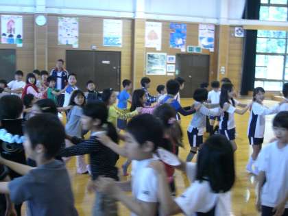 3楽ルタイムは、乾隆小・楽只小・紫野小が、小小連携の一環として取り組んでいる活動です。それぞれの学校の担任の先生方が、三校の子供たちがお互いに交流し、仲良くなれるよう工夫したゲームをしてくださいました。