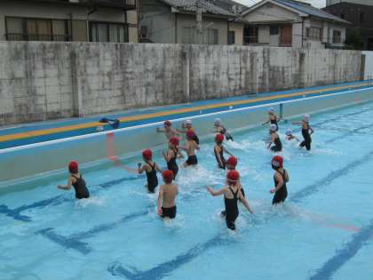 6月11日の1・2時間目に低学年が水遊びを行いました。1年生にとっては初めての小学校のプールで,朝から楽しみにしていました。途中から小雨も降ってきましたが,みんな今年度初めてのプールを楽しんでいました。今週低水位での水遊びをもう一度行い,来週から水位を上げての水泳学習が始まります。