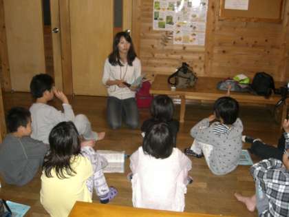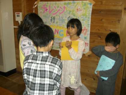 24日の夜は、天体観察が予定されていましたが、残念ながら、曇り空で天体観測は中止となりました。星座に関するビデオを30分ほど見た後は、入浴し、一日を振り返る反省会をしました。一人ひとりが今日一日の成果と課題をみんなの前で発表しました。先生方からもお話を伺いました。寝る前に最後の健康観察をして、明日の登山に向けて体をゆっくり休めます。