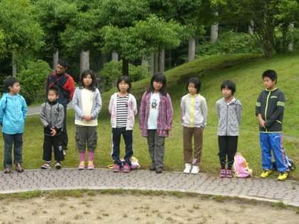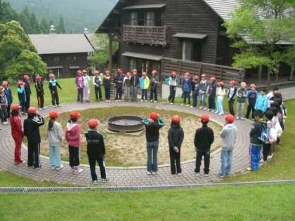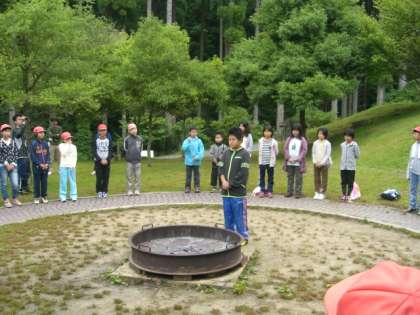 二日目の朝のつどいは、昨日、交流ゲームを一緒に楽しんだ紫野小学校と行いました。お互いの校歌を歌ったあと、両校の代表が、お互いの学校にエールを送りました。