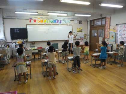 音楽の授業で「しろくまのジェンカ」を歌ったり,リズムにのって体を動かしたりしています。これまでは,「タン うん タン うん タン タン タン うん」のリズムで手拍子をしたり,歌ったりしていましたが,今日はリズムに合わせて跳ぶことをしました。音楽のリズムに合わせて楽しく跳ぶことができました。