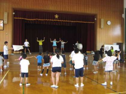 運動会まであと10日になりました。学年の練習も順調に進んでもうすぐ運動場での練習に入っていきます。高学年による係活動も頑張っていて,応援は今日から色ごとの全体練習に入りました。応援団の元気のいい声に引っ張られてみんな大きな声で練習しています。