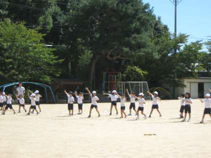 いよいよ運動会まであと5日になり,練習も最終段階に入ってきました。低学年は運動場で立ち位置を確認しながら踊りをしました。今週は暑い日が続きますが本番で成功するように残り少ない練習を頑張りましょう。