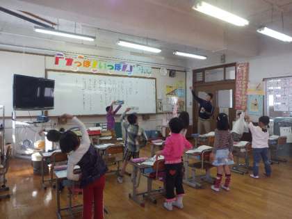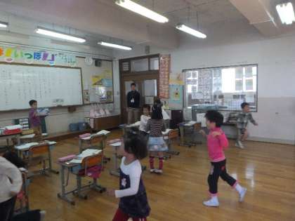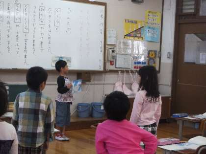 国語では,下の教科書を使って「くじらぐも」の学習をしています。今日は,はじめの場面の子ども役とくじらぐも役に分かれて,動作を交えながら,学習しました。子どもたちは,役を演じながら楽しく音読していました。