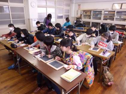 京都市学校歴史博物館で石盤体験と展示見学をした後,豊国神社,方広寺,耳塚の見学にも行きました。今回の社会見学を通して,歴史のなかで行われてきた人権侵害などにも目を向けるきっかけとしてほしいと思います。