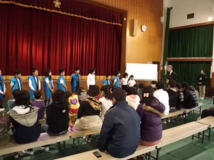 中学年では,『総合的な学習の時間』で学習した,京都ライトハウスの創設者である鳥居篤治郎先生について劇にして発表しました。子どもたちは,鳥居篤治郎さんの生き方を通して,『何事も最後まであきらめないで取り組むことの大切さ。』『自分から新たな一歩を踏み出すことの意味の大きさ』に気付きました。また,これからも「一人一人が大切にされる楽只のまちをめざしていこう」という気持ちを大切にしてほしいと思います。