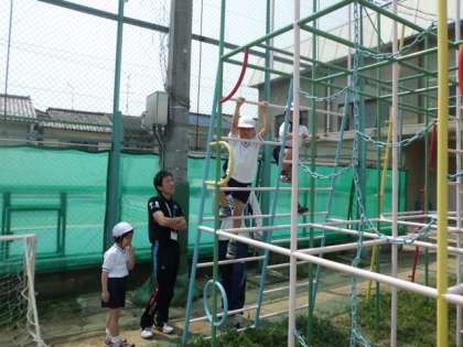 今日は体育で「総合遊具の使い方」を勉強しました。いろいろな登り方や下り方をして遊ぶだけではなく,順番を並んで待つなど,学習のきまりを守り,みんなと仲良く安全に遊ぶことも大切にしています。