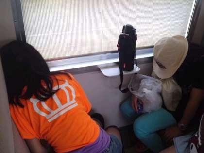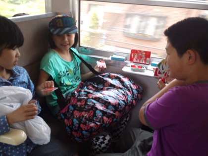 疲れていて,乗ったとたんに寝始める子どもがいる一方で,元気にカードゲームを始めるグループもありました。