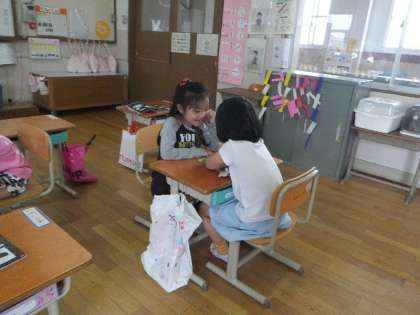 「おおきくなあれ」の学習で,花壇に育てる花について話し合いました。教科書に載っている花について知り,自分の育ててみたい花を2人組で話し合いました。そして,みんなの前で「どうしてその花を育てたいのか」を発表しました。