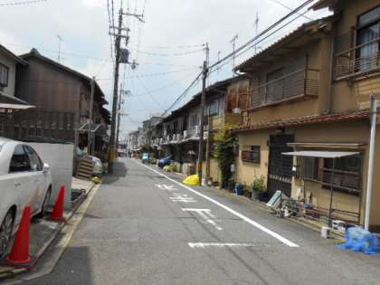 わたしたちの小学校は北区にあります。学校の近くには,北大路通りと千本通りがあり,大きな道沿いにはお店が多くあります。また,細い道に入ると家がたくさんあります。また,学校からみて東側には,船岡山があり,緑があふれています。学校からみて西側には紙屋川という川が流れています。ほかにも,近くに田や畑はありませんが,大学やお寺などがあります。
