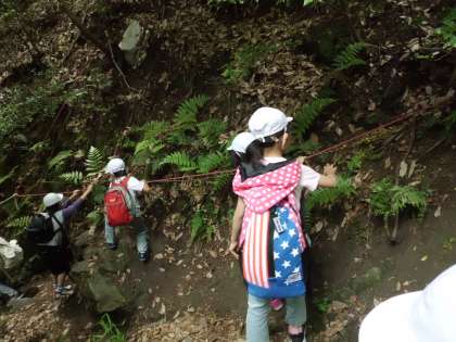 登りとは違う道で下山しました。途中,ロープをつかって下りる所もあり,少しアスレチック気分も味わえました。