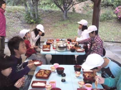 夕ご飯は,トンカツにみそ汁。おかわりする子もいて,みんなしっかり食べました。