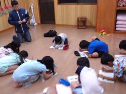 本校レクリエーション係の大活躍で大盛り上がりのキャンプファイヤーの後は,その日1日を静かにしっかりと振り返りました。