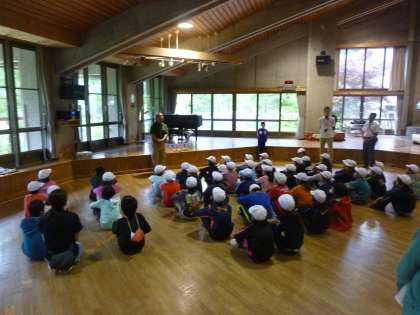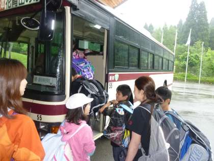 紫野小学校と一緒に退所式に臨みました。所員の方からお話をいただいた後、代表の人が4日間を振り返り言葉を述べました。バスに乗るまで、所員の方が、ハイタッチで見送ってくださいました。4日間、本当にありがとうございました。たくさんの成長と課題の見えた4日間になりました。