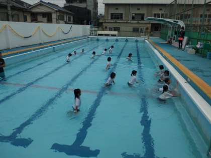 夏休みが近づいてきたこともあり,低学年でも着衣水泳に取り組みました。夏休みに水辺での事故などをよく耳にします。着衣水泳を通して「もし川や海でおぼれてしまったら…」「もし友達が近くでおぼれていたら…」ともしもの場合を想定し,練習に取り組みました。子どもたちからも「大声で大人を呼ぶ」や「ペットボトルやボールなどの浮くものを近くになげる」などと積極的に活動に参加していました。実際にペットボトルを使って体を浮かす練習にも挑戦しました。1年生は服を着て水に入る経験が初めての子が多かったので,心配をしていましたが,一生懸命取り組んでいました。またお家の方でも子どもたちに聞いてみてください。