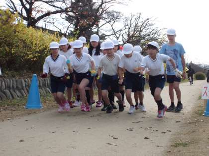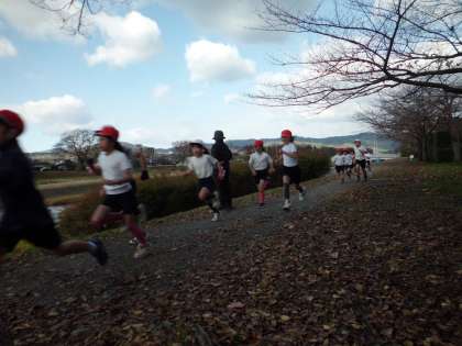 12月2日(火)持久走大会を行いました。風が強く,気温も10度を下回る中でしたが,子どもたちは,それぞれのペースで賀茂川河川敷を走りました。