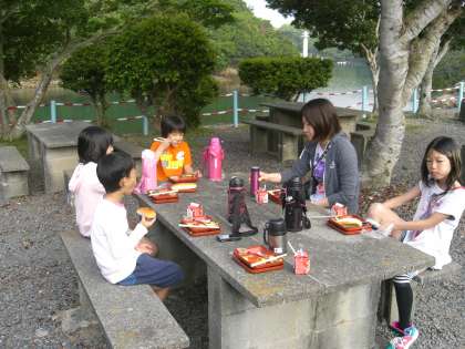 みさきの家での最後の食事となる、三日目の朝食です。今日も、トンビ対策をしっかりとして、パンは最後に配ることにしました。集団行動なので時間を決めて食べようと頑張りました。ほとんどの人が完食することができました。