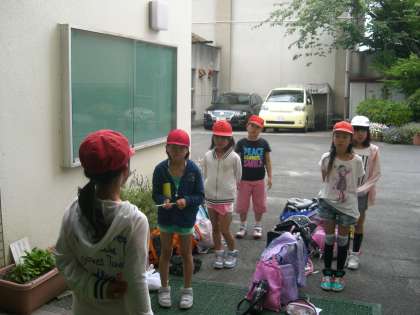 予定より早く学校に到着しました。さっそく解散式が行われました。みさきの家での三つの約束「あいさつをしよう」「5分前行動」「来た時よりも美しく」は、これからの生活でも大いに生かしていけそうです。おうちの方にたくさんお土産話をしてくれることでしょう。