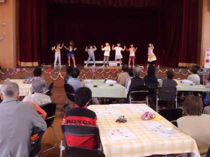 5月19日(火)地域の高齢者の方々をお招きして,『ふれあい給食会』を行いました。今回も30名以上の方に参加していただき,5・6年生と一緒に給食を食べたり,1年〜6年生の出し物を楽しんでもらいました。