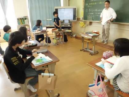 6年生の算数は,『分数×分数』の学習をしています。今日は,分数×分数の考え方を面積図を使ってそれぞれが説明をしました。