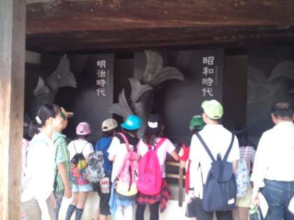 姫路城内には、天守閣だけではなく、怪談話のある「お菊井戸」や以前の改修の際にはずされた天守閣のシャチホコの展示会場もありました。