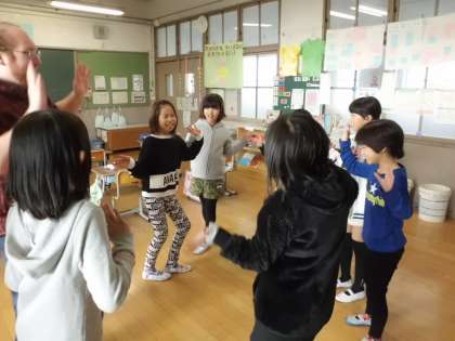 体の部分を表わす単語を歌に合わせ,その部分をタッチしながら声に出していきました。