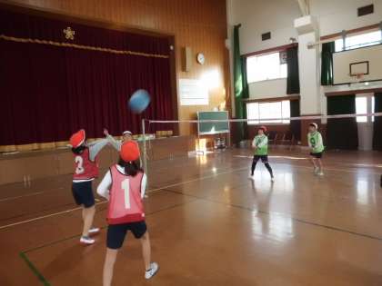 3・4年生の体育では「ソフトバレーボール」の学習をしています。