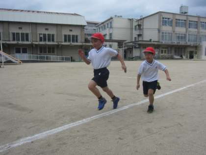 次に,運動場で「50m走」のタイムを計りました。腕を一生懸命に振りながら,ゴールを目指して走っていました。