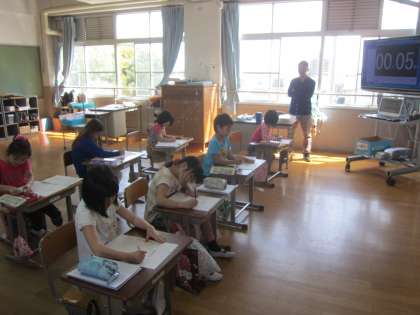 今日は2・3・4年生の様子を見に行きました。「百マス計算」,「角度」などの問題に取り組んでいました。今後,1年生も,学校生活に慣れてきたら取り組みます。
