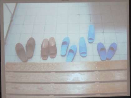 ある日の,くつ箱やトイレの入口の写真を見ながら,気付いたことを話し合いました。