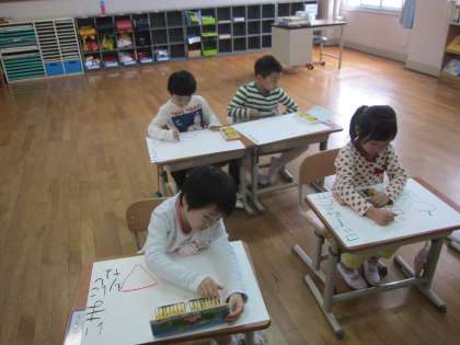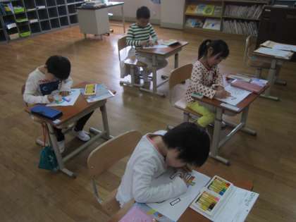 初めての5時間目も図工でした。この時間は,学級目標の文字に色を塗りました。とてもカラフルな色にしていました。