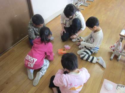 可愛らしいお花や笑顔いっぱいの似顔絵,カラフルに塗った文字などで心を込めて作っていました。完成が楽しみです!