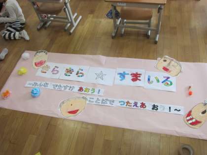 1年生では,みんなで決めた学級目標を,模造紙や画用紙,お花紙を使って作っています。