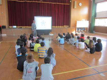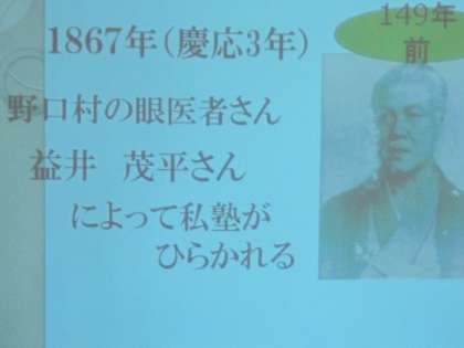 今日は,楽只小学校の創立記念日でした。朝会では,1年生が初めて他の学年と一緒に,校歌を歌って創立143年のお祝いをしました。元気のよい歌声が響いていました。また,益井茂平先生や木造の校舎などの昔の写真をもとに,楽只小学校の歴史を振り返りました。