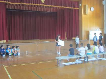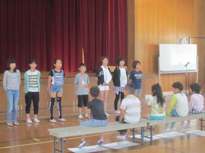 4年生からは歌とダンス,5年生からは好きなことを実演しながらの自己紹介,6年生からは学校のルールに関する楽しいクイズがプレゼントされました。