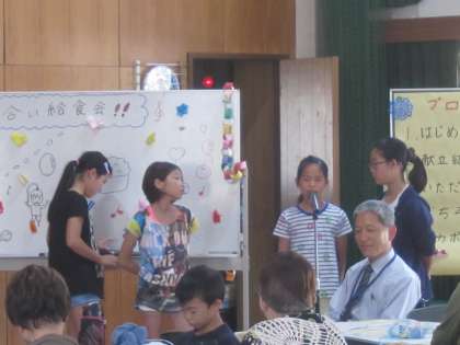 20日(金)に,地域のお年寄りの方をお招きして「ふれあい給食会」を行いました。主に,5・6年生が中心となって企画・運営しました。一緒に給食を食べたり,将棋やオセロなどのゲームをして交流を深めました。
