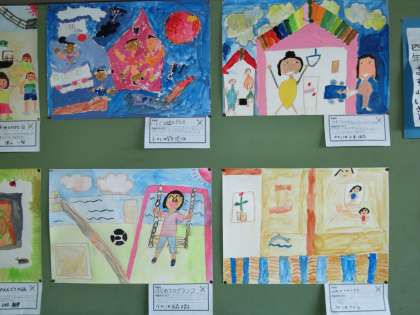 4年生は,図工で「わすれられない あの時」の絵を描きました。昨年の話,小学校に上がる前の話,生まれたばかりの頃の話など,みんなが思いをこめて描いていました。