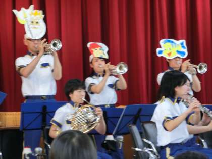 最後には,子ども達を取り囲んで「勇気100%」を演奏してくださいました。