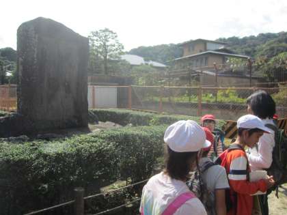 その後,疏水の出口の部分や,工事中に殉職された方々の慰霊碑の見学に行きました。工事の苦労や工夫,慰霊碑を建てた田邉朔郎さんの優しさを,肌で感じ取っていました。