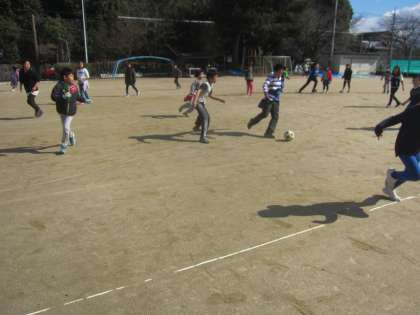 なかよし給食の後は,「なかよし遊び」をしました。赤1・白1グループはサッカー,赤2・白2グループはどろじゅんをして楽しみました。運動場から,たくさんの笑い声が聞こえ,とても賑やかな昼休みとなりました。