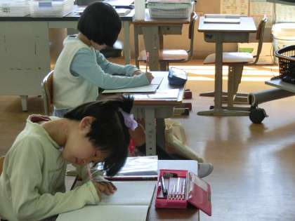 音読発表の後には,活動を振り返り,感想を書いていました。