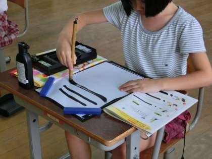 新品の筆をおろして,墨汁に付けるときには,とても緊張した様子でした。
