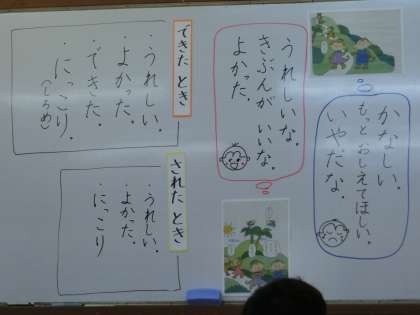 初めての休日参観日,1年生の1時間目は道徳でした。5月の生活目標にもなっている「きもちのよい あいさつ」について考えました。あいさつの全くない島に旅して,つくづくあいさつの大切さを感じて,その島を明るいあいさつでいっぱいの素敵な島に変えたお話でした。子どもたちは,あいさつのもつ様々な良さについて感じていたようです。