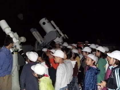 本日最後の活動は天体観測です。大きな望遠鏡で木星を見ました。衛星が3つはっきりと見えました。ちょうど国際宇宙ステーションが頭上を通過する時間にあたり,すごいスピードなんだなあとびっくりしました。