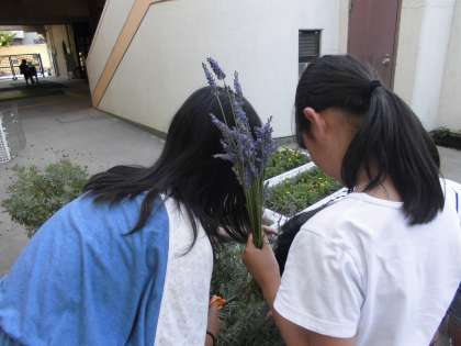 ラベンダーの花がきれいに咲きましたので、花を摘みました。束にして乾燥させてポプリにしたいです。とてもいい香りがします。