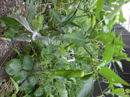 昨日から,かみなりがなったりして,学校の野菜はどうなったかなと心配していました。でも,畑を見に行くと「先生,たくさんなっている。」と大喜びの声。ししとう,トマトがたくさん収穫できました。夏休みに三人で調理します。お楽しみ。