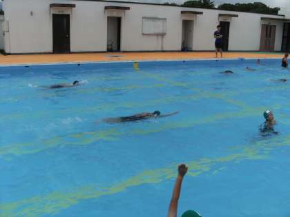 夏休みがすぐそこです。水泳学習もあとわずかとなりました。今日はめだか教室がありました。腕のかき,バタ足,息継ぎと練習するポイントは人によってちがいますが,それぞれがあと少し泳げる距離を伸ばそうとがんばっていました。