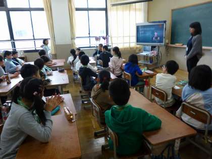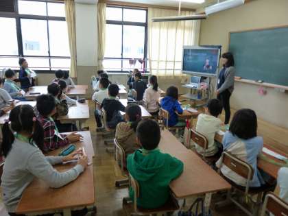 はじめてだったので,自己紹介をしました。子どもたちは,名前と好きなものを伝えたり,ALTの先生の出身国のことを教えてもらったりして,とても楽しく学習できました。