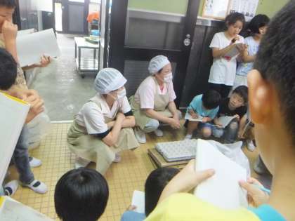 社会科の「くらしとごみ」の学習では,学校から出るごみについて調べています。今日は給食室から出るごみについて,直接,給食調理員さんから教えていただけることになりました。「一番多いのは生ごみ。」「今日は少ないほう。」という言葉に驚いていました。たくさんの量のたまごを使うことや,たまごはパックではなく,紙でできた箱に入れられていることも知ることができました。
