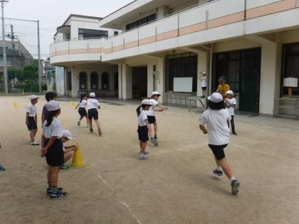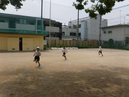 3年生では,体育でリレーの学習をしています。自分たちのチームが勝てるように,バトンの渡し方,リードの仕方,走る順番などを考えている姿が見られました。